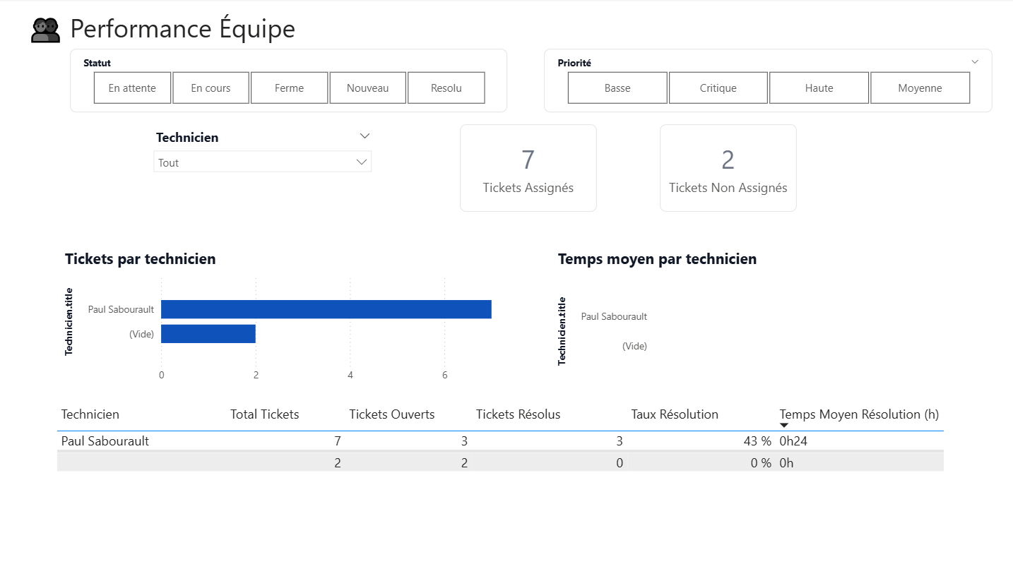 Sans Power BI, vous gérez à l'aveugle. Avec Power BI, vous pilotez votre support IT comme un pro. Graphiques temps réel, tendances, performance par technicien.